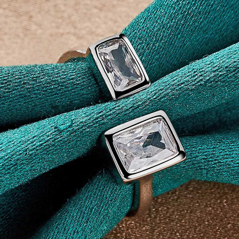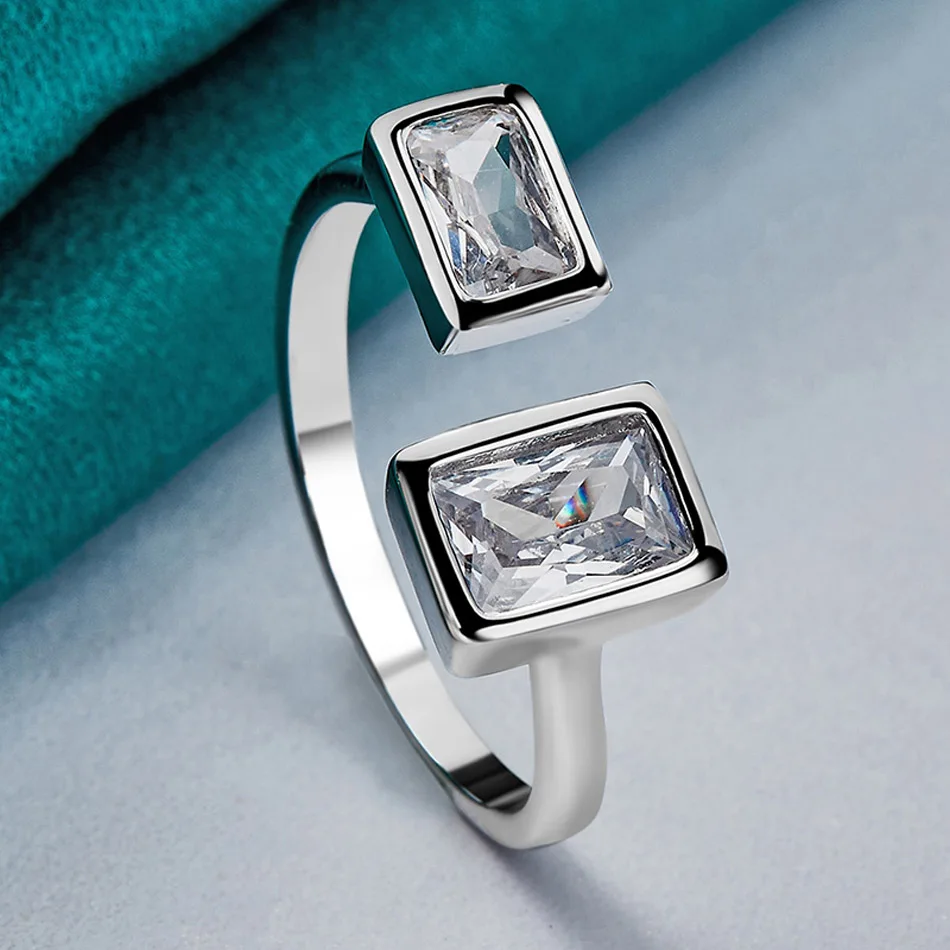 URMYLADY 925 Sterling Silver Double Square Zircon Open Ring For Women Wedding Party Charm Fine Jewelry