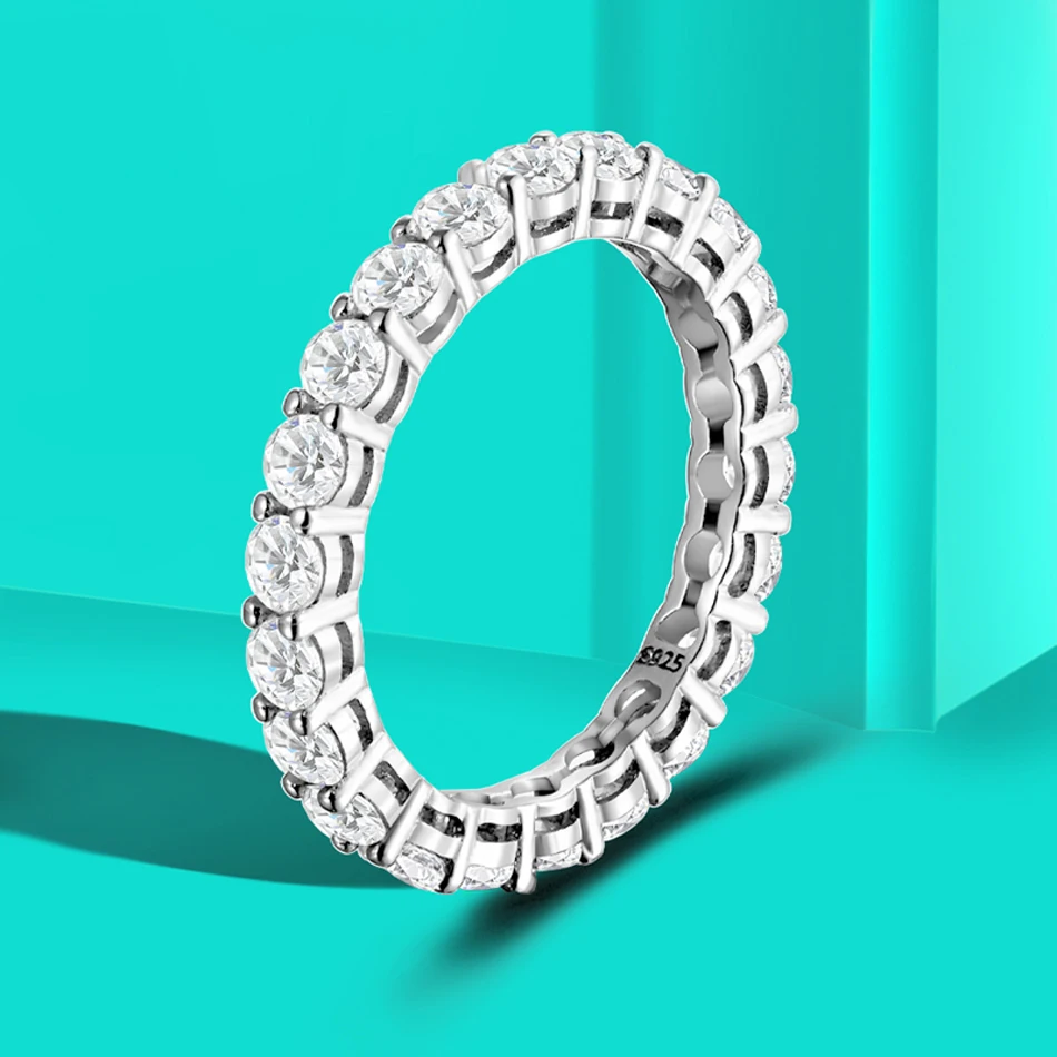 URMYLADY 5mm 7ct D Color Moissanite Ring 925 Sliver Plated with White Gold Wedding Band Eternity Band Engagement Rings For Women