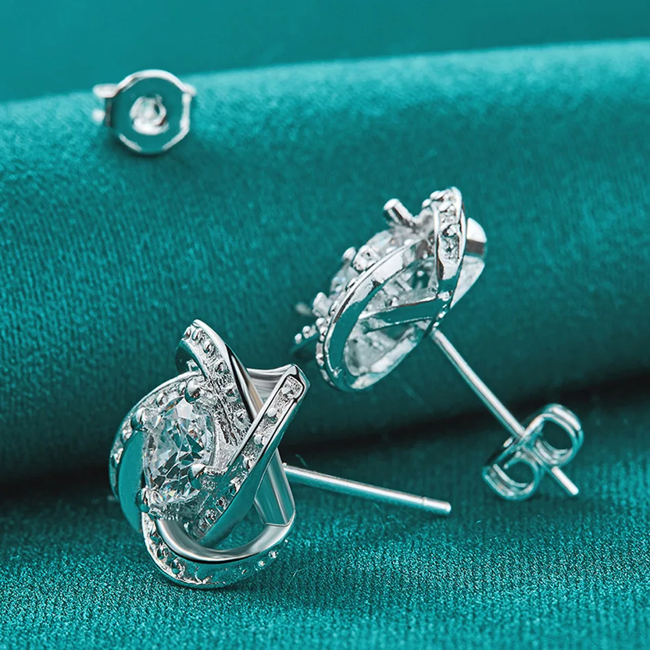 925 Sterling Silver Four-Leaf Clover Zircon Earring Stud Earrings For Women Charm Wedding Engagement Fashion Jewelry